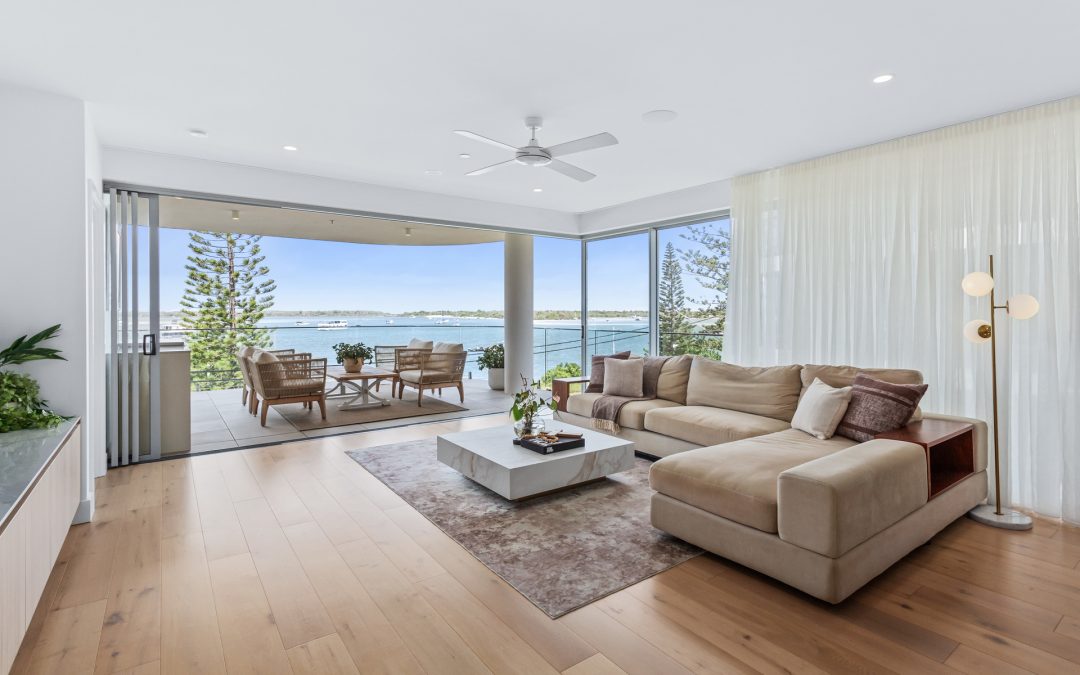 Wake up to breathtaking, never-to-be-built-out panoramic views of the shimmering Broadwater, where the rhythm of passing yachts and the sparkle of aquamarine waters set the tone for your day. Positioned in an exclusive boutique building with only seven residences-one per floor-this sophisticated, full-floor apartment redefines luxury coastal living.